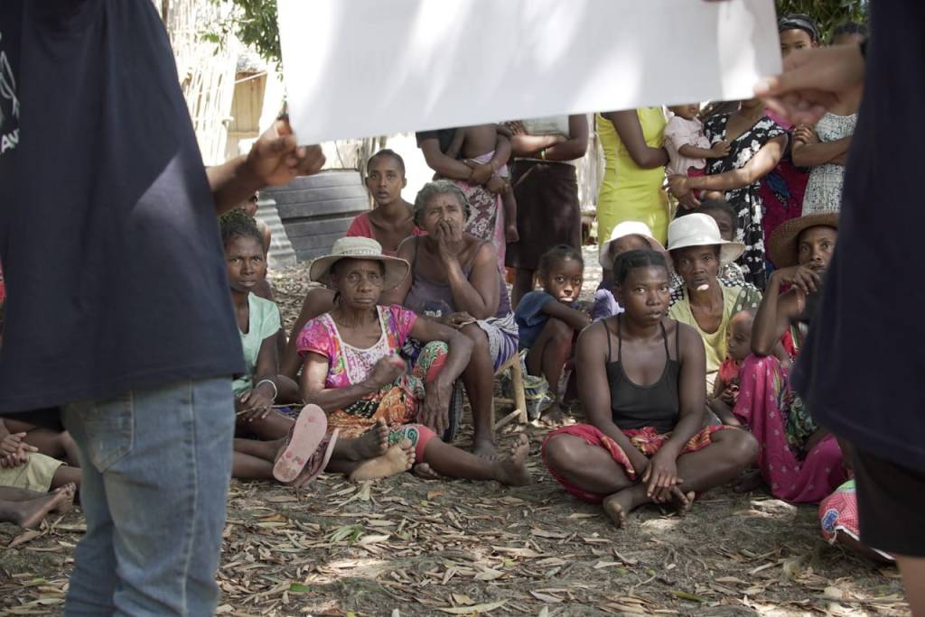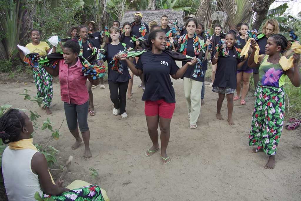 MatinĂ©e bien remplie pour nos colibris. C’est sous le grand arbre Ă  litchis que le ComitĂ© de Femmes Ă  assistĂ© Ă  la prĂ©sentation des jeunes ! Le comitĂ© tient une place essentielle au sein du village, puisqu’à travers leurs chants et leurs danses, cette association de femmes dĂ©livre des messages, propage les nouvelles. Bruyantes, Ă©clatantes et chaleureuses, elles ne passent jamais inaperçues ! Les jours de grandes rĂ©unions, elles danseront et chanteront pour informer tous les habitants de l’importance du chantier, de l’arrivĂ©e du chĂąteau d’eau. Les femmes ont applaudi quand elles ont appris que le projet prĂ©voit 2 lavoirs !