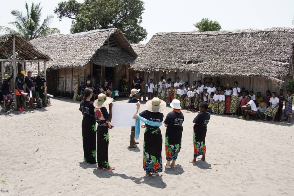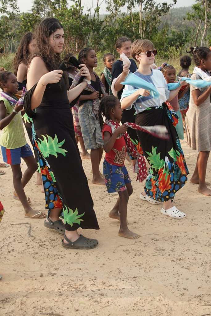 Aujourdâhui premiĂšre expĂ©dition pour prĂ©senter le projet aux habitants d’Ampanakary, un des 6 hameaux d’Ampahantany. AprĂšs 8,5 kilomĂštres de marche, le groupe est accueilli par les danseuses traditionnelles !! Pause pique nique suivi d’une belle aprĂšs midi, baignade dans une eau Ă 30 degrĂ©s, partie de foot et danses….
