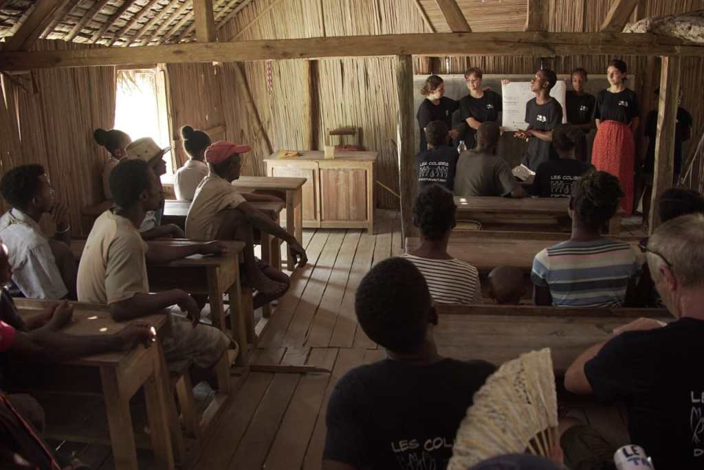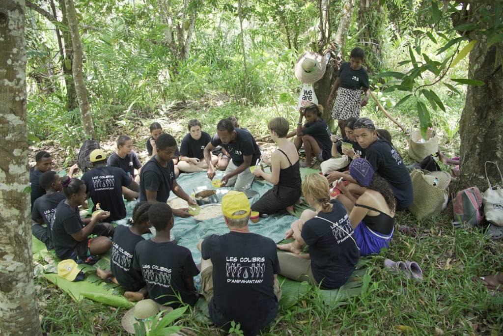 Journée bien rythmée qui débute par une splendide randonnée ! Cap sur le hameau d’Ambinanindrano afin de présenter le projet à ses habitants ! Le niveau monte, le dénivelé aussi !! Une belle complicité s’est installée au sein du groupe. Pique nique sur les feuilles de l’arbre du voyageur, le ravinala. Puis, pause fraicheur prés d’une magnifique cascade…Après ces 10 kilomètres de marche, l’équipe appréhende les 20 kilomètres de demain avec ces 4 montées bien escarpées !!