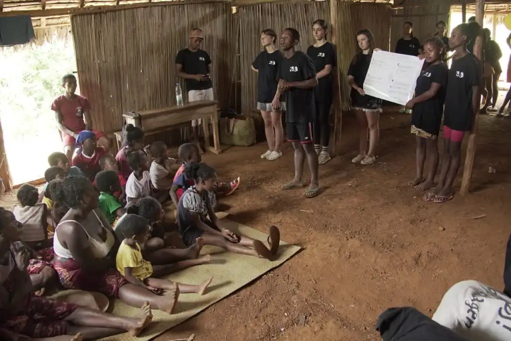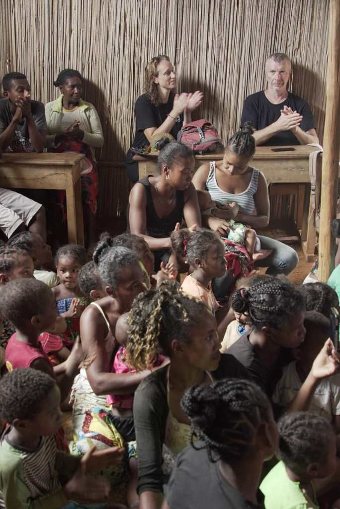 Aujourd’hui direction les deux derniers hameaux du village : Marovitra et Marovato pour la présentation du projet ! Les habitants ont réservé un accueil chaleureux et émouvant à nos jeunes qui sont maintenant des orateurs bien entraînés et des randonneurs aguerris ! Les 20 kilomètres de marche n’ont posé aucun problème, même sous la pluie ! Le groupe a partagé deux beaux repas dans une ambiance conviviale. Un déjeuner traditionnel ainsi qu’un dîner spectacle son et lumière, j’ai nommé… L’orage !!!!