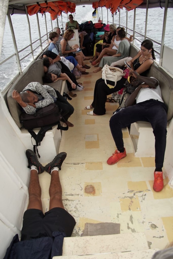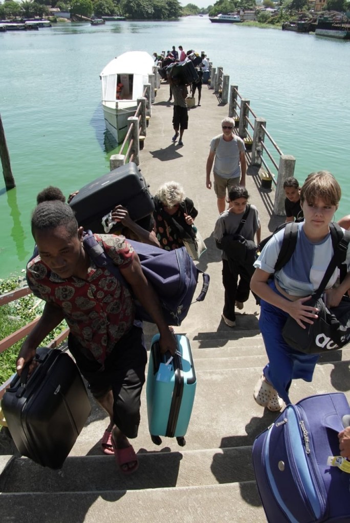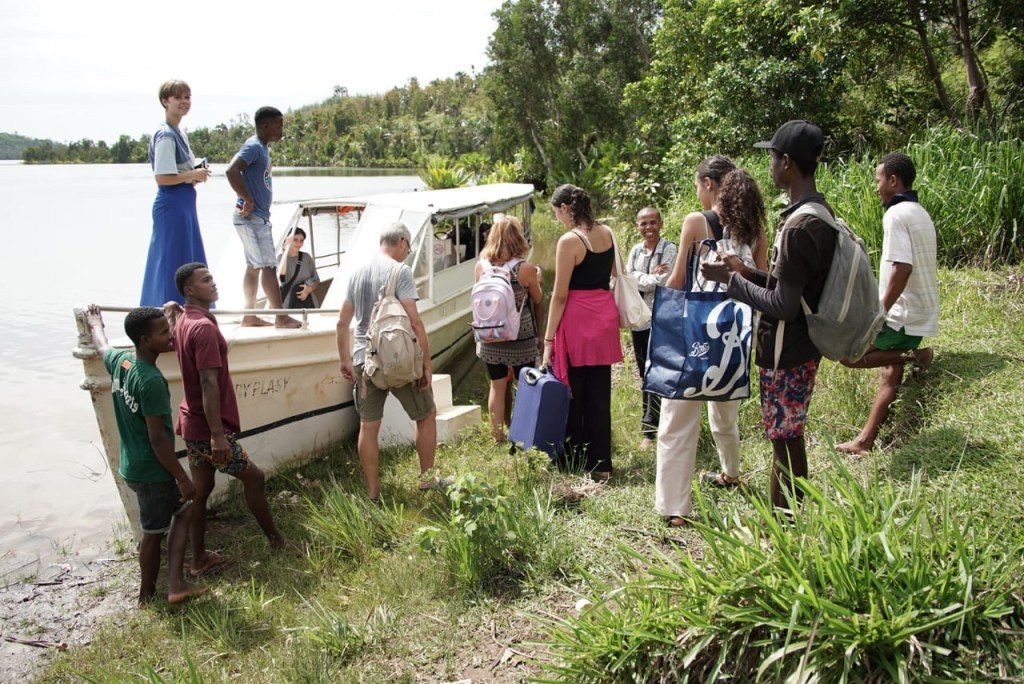 Ce matin, dĂ©part en bateau le long du canal des Pangalanes. Pique-nique bien sympathique sous un arc-en-ciel inattendu…