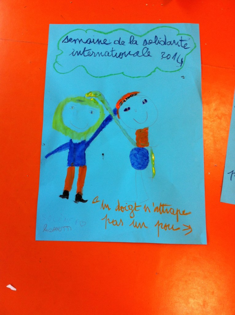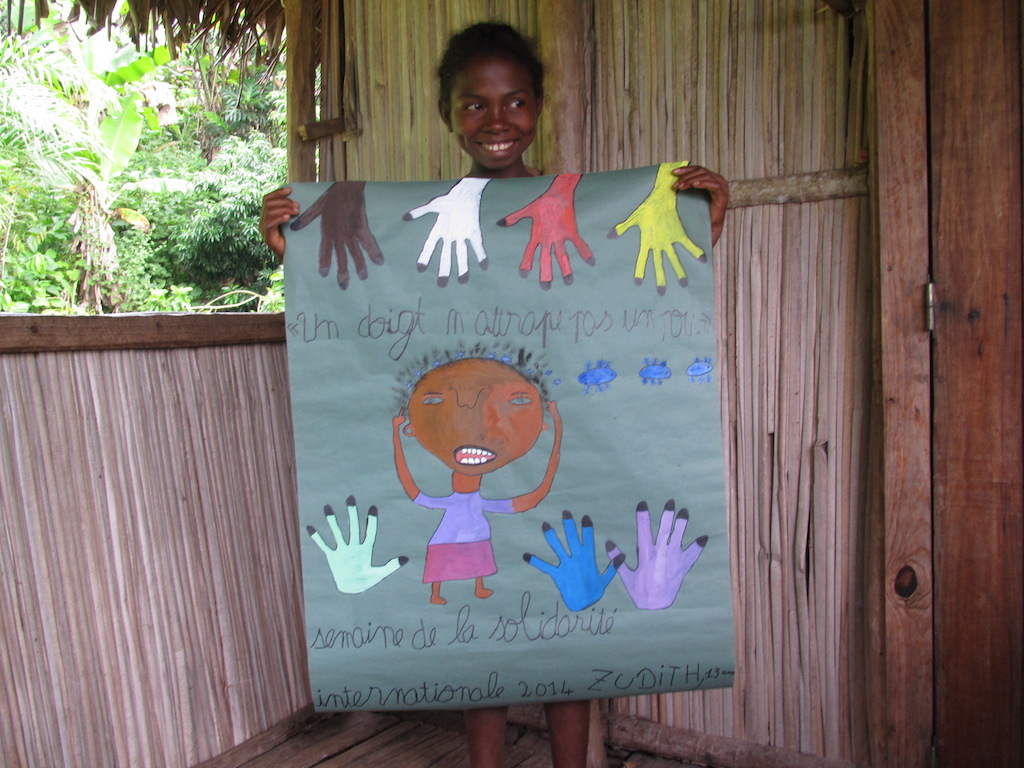 Pendant 2 ans, chaque mercredi, les enfants des centres de loisirs d’Argenteuil ont donné 2 h de leur temps pour participer à un échange avec les enfant d’Ampahantany avec le soutien de la commune d’Argenteuil, un grand concours d’affiches a été mené ! les enfants devaient par groupe de 2 représenter le proverbe malgache : « Un doigt n’attrape pas un pou « . À Madagascar, la même consigne a été transmise aux enfants d’Ampahantany. Pour que tout les enfants aient la même chance, les centre de loisirs ont fait don à l’association de papier affiches, peinture, crayons, gommes… Le jury a délibéré lors du gala de la semaine de la solidarité internationale organsé par la ville d’Argenteuil en novembre 2014. En 2015, un échange d’objets a été réalisé entre les enfants ds deux pays !